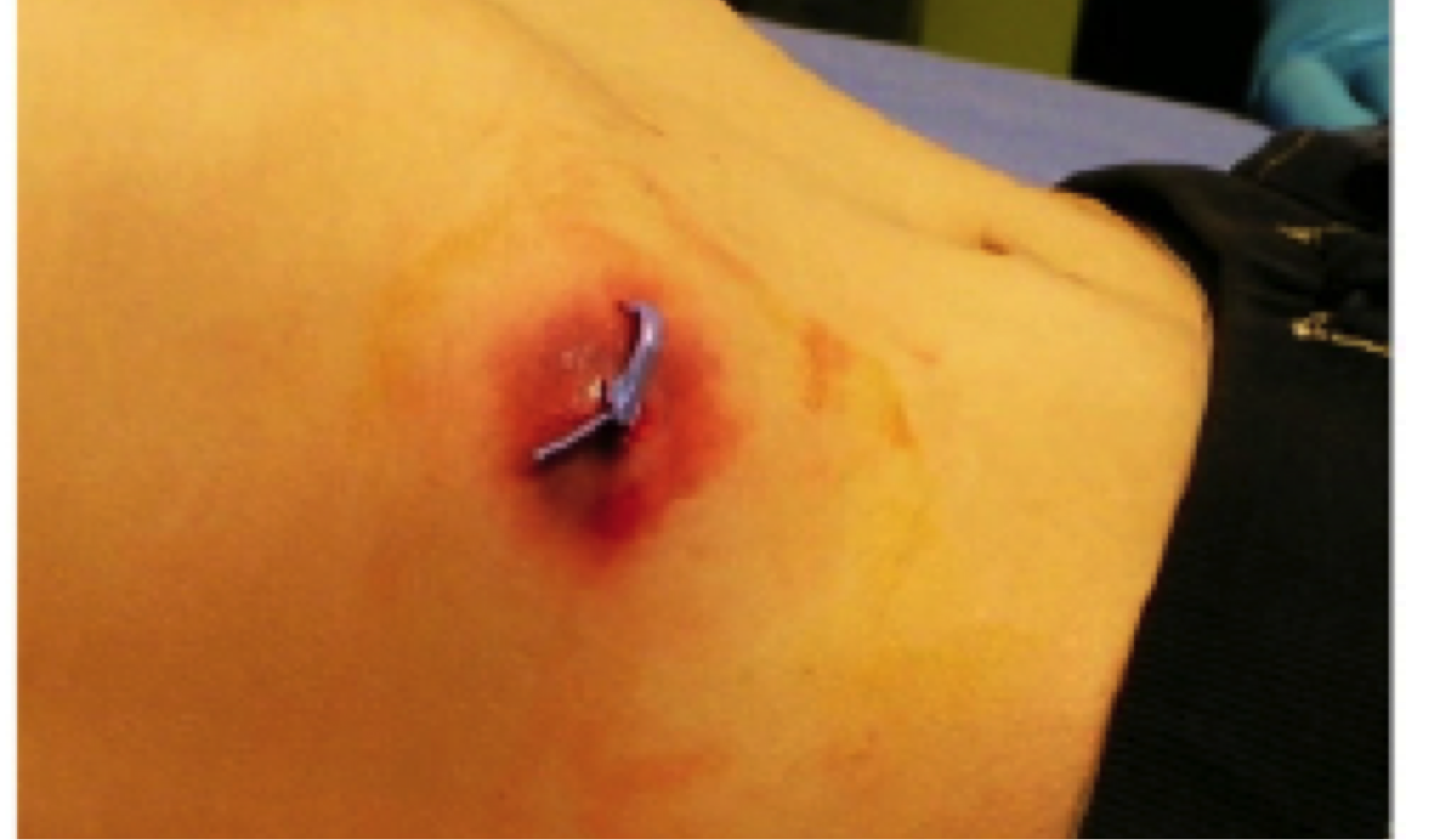 - Keep the area covered with a clean dressing to absorb the drainage and protect the loop from getting pulled on.